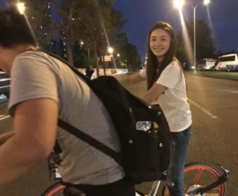 照片的背景明顯就是夜晚的大塞車(chē),工作收工后的林允被堵在路上,于是下車(chē)解鎖共享單車(chē)。