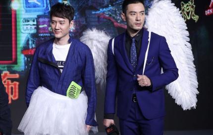 主演們放飛自我,現(xiàn)場變成維秘秀場。劉亦菲戴著毛茸茸的狐貍耳朵走秀,造型可愛,笑容迷人。幾位男主相對就比較“辣眼睛”了。馮紹峰模擬片中造型,穿起白色蓬蓬裙,畫面實在喜感。妖管局局長”李光潔則披著翅膀走秀,他笑說:“我的翅膀可厲害了,比維秘的重幾倍,很辛苦的?!崩罟鉂嵧嘎镀兴且恢欢d鷲精,負責管理所有的妖精。郭京飛披著粉色殺馬特頭發(fā),讓眾人笑cry。郭京飛透露片中演一只貓,“我的妝畫得比別人濃,因為有種高貴的氣質(zhì)?!?/p>