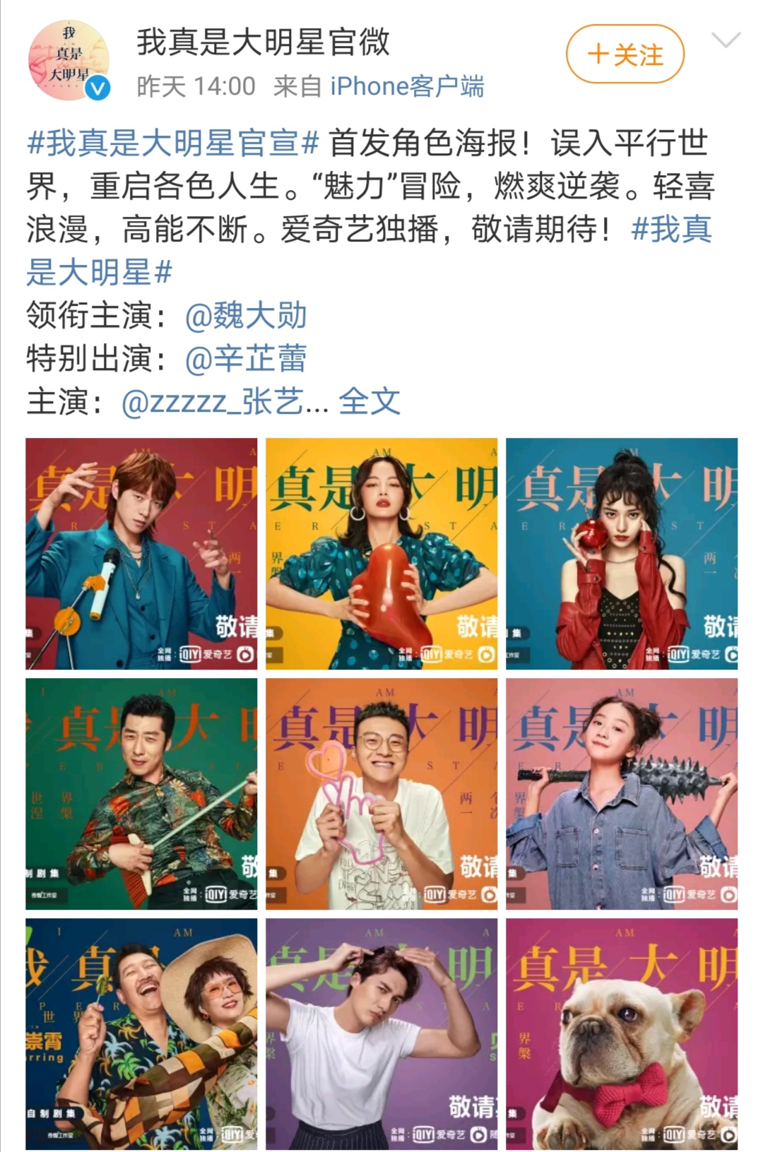 《我真是大明星》在4月20日正式官宣開拍,該劇由小說改編,是黑巖閱讀網(wǎng)簽約作者秦雯的原創(chuàng)作品 。全網(wǎng)都市類前三甲的超級(jí)IP創(chuàng)新熱血職場(chǎng)科幻劇,在當(dāng)年可謂是神書級(jí)別的,一時(shí)之間風(fēng)靡全網(wǎng),誰都想成為那個(gè)穿越平行時(shí)空做文抄公的張燁,一路開掛,一路碾壓。