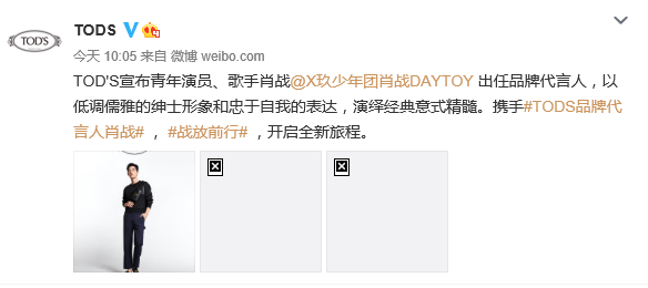 2021年5月19日,高奢品牌Tod's的品牌正式官宣品牌代言人,那就是正當(dāng)紅的偶像明星-肖戰(zhàn)。