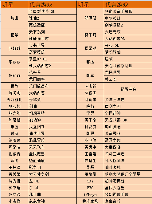 發(fā)展至今,明星代言人幾乎已成為手游的標(biāo)配。