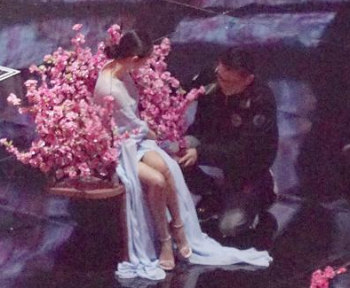 當晚,楊冪作為表演嘉賓受邀出席晚會,她一身仙氣長裙,仿佛天外飛仙從舞臺上空緩緩降落,飄逸身形仙氣十足。在秀了一番驚艷的出場之后楊冪坐在秋千上,飄逸裙擺拖地,或工作人員細心幫忙整理,她一臉微笑的向工作人員致謝,一雙美腿光潔性感,誘人眼球。