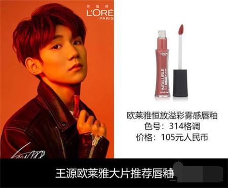 王源恐怕是少有的代言口紅真的上陣涂上口紅的明星。在今年的七夕情人節(jié)期間更是推出“王源色”主打產(chǎn)品。